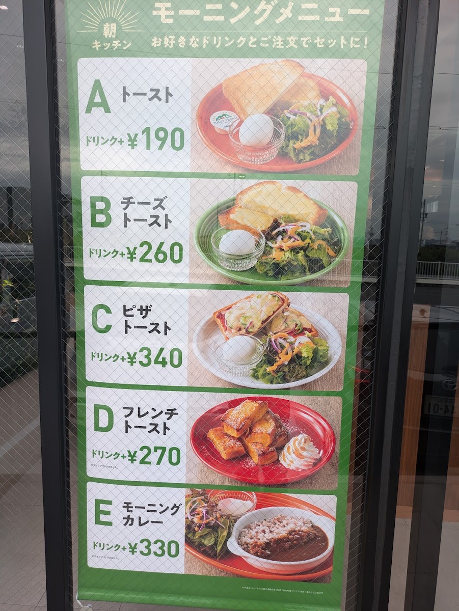 The menu at Doutor Kitchen Enejet Togo offers a variety of café-style food and drink options primarily suited for breakfast, light meals, and coffee breaks. Visitors can expect a range of coffee beverages alongside a selection of morning sets featuring toast-based dishes. These morning sets include different styles such as classic toast, cheese toast, pizza toast, French toast, and a curry option served with rice and salad.